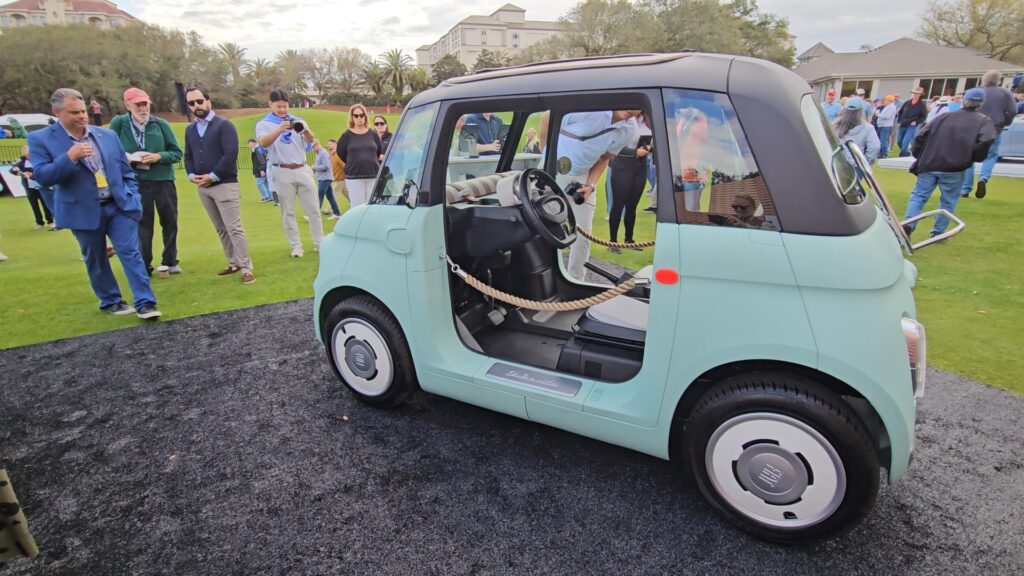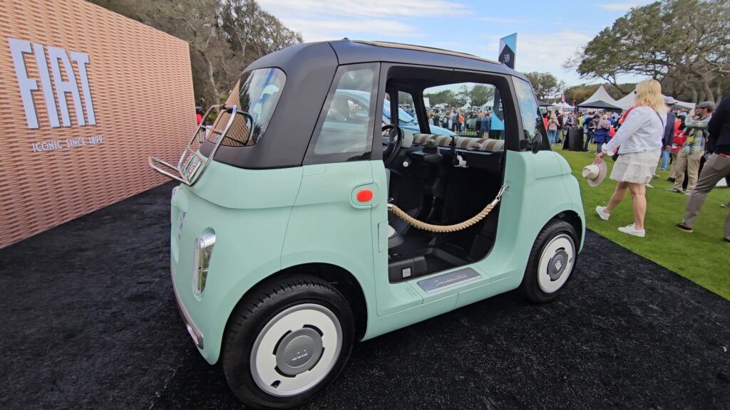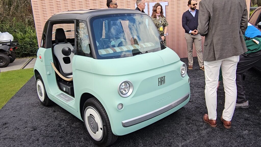 Although the Topolino I saw had open sides, the U.S. version will be available with proper doors, making it a fully enclosed vehicle for all weather use. That gives it a big advantage over traditional golf carts, and of course golf carts can’t begin to compete with the Fiat’s style.