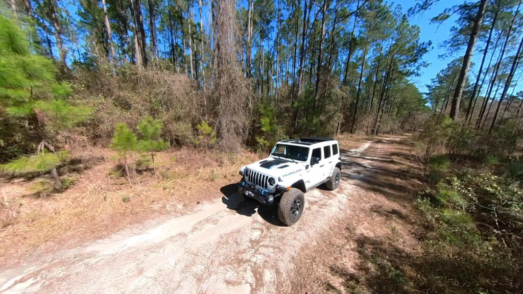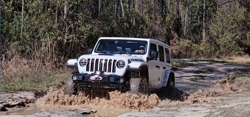 Jake Fuch’s Wrangler tackles a water and mud soaked path in the Belmore State Forest in Clay County, FL.