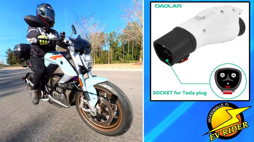 What’s nice about the Daolar adapter I tested ($89) is how small it is. I’ve got a Zero SR/F, so space is at a premium but Daolar’s adapter fits easily in my motorcycle’s storage compartment.