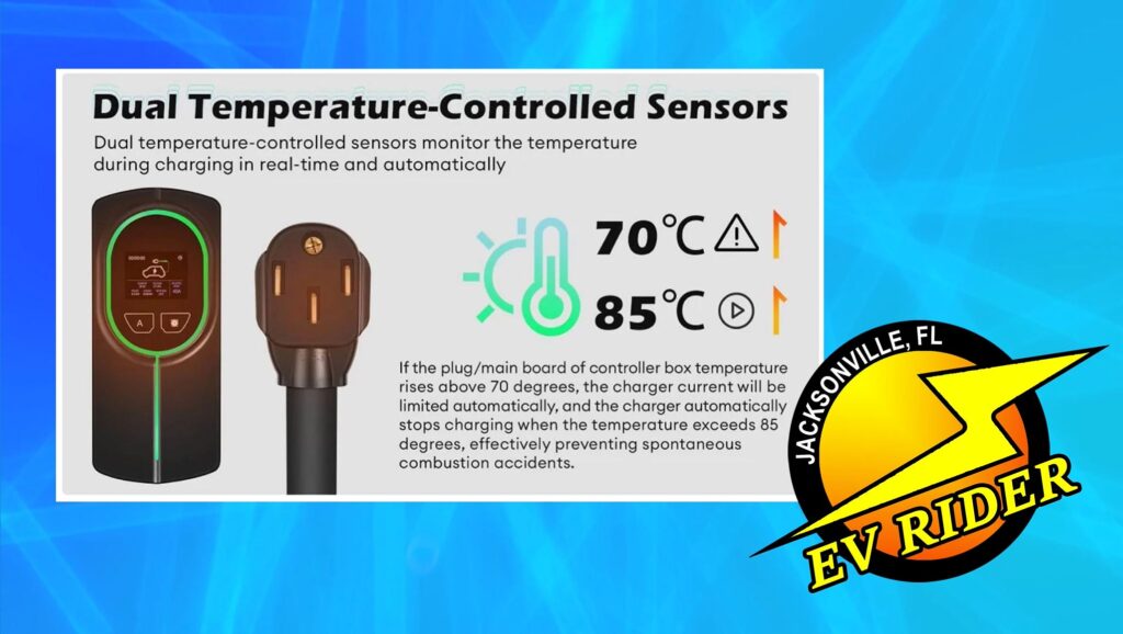 The Daolar has UL-listed 600-volt cabling.  It includes dual temperature-control sensors at the NEMA 14-50 socket and in the control box along with over-and-under voltage protection.