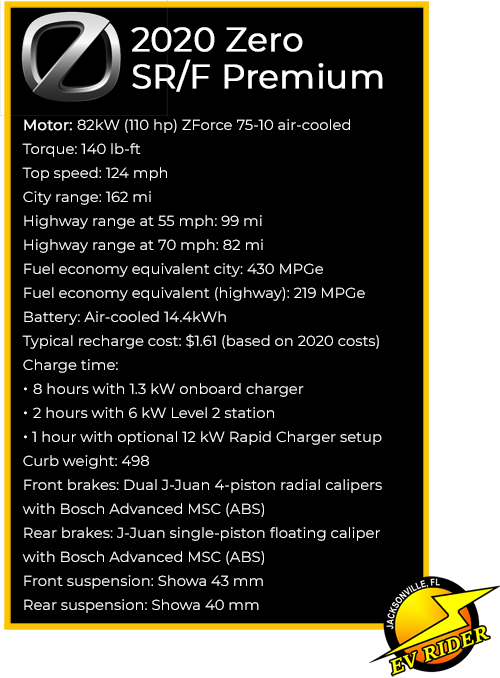I’ve found Zero’s 2020 range estimates for my SR/F have been spot on. Zero estimated 99-miles at 55 miles-per-hour and 82-miles at 70.