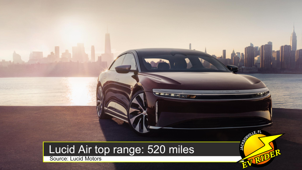 The top trim level for the new Lucid Air EV, for example, offers a range of 520 miles, while a 2022 Tesla Model S tops 400 miles of range on a charge.