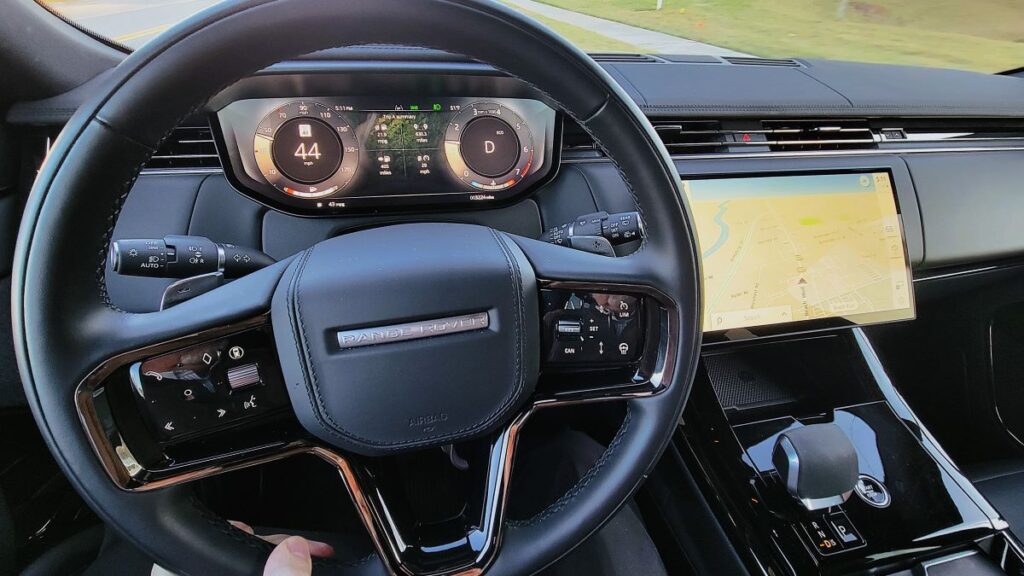 Main screen graphics are clear, but wash out a bit in the sun. Say “Range Rover,” and the AI voice command easily handles most requests verbally, although I had to wait for a beep to start speaking. There’s also wireless Apple CarPlay and Android Auto, a Wi-Fi hot spot, HD radio and a phone charging pad under the sliding upper center console door.