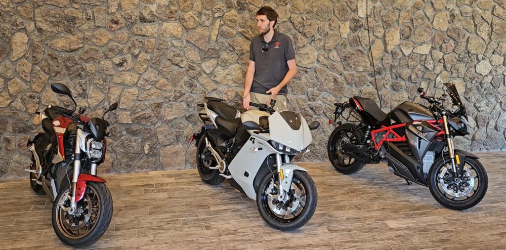 eMoto Powersports Owner Austin Ammarell started riding in the area in 2018 and got the idea for his business after so many fellow motorcyclists started approaching him with questions about EVs. “Every time we’ve come here, half the time we can’t leave on time because people are bombarding us with questions about bikes. What they do, how far they go on a charge,” said Austin.