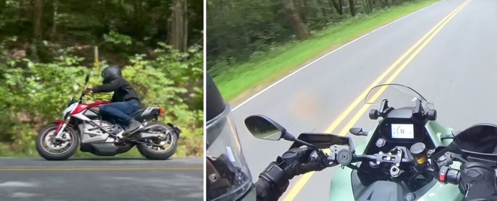 Electric motorcycles offer a big advantage in those sharp curves for several reasons. The Zeros and Energicas have high levels of regen, which quickly slow down the bikes when heading into turns. Because there are no gears, coming out of the turns is also easier since there’s no need to worry about shift points. The EVs don’t have manual transmissions.